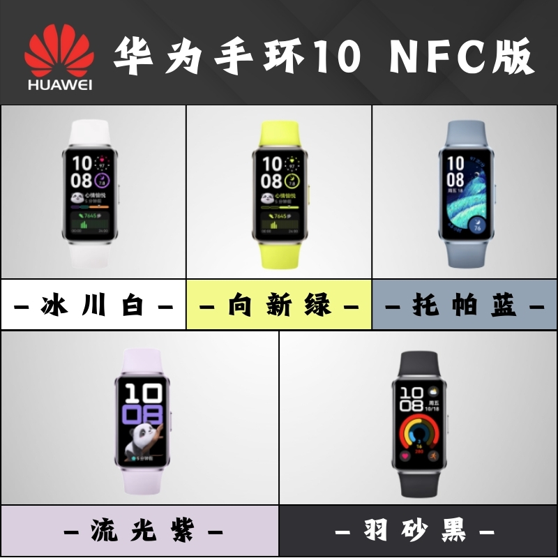 华为手环10 NFC版 - 冰川白 / 流光紫 / 向新绿 / 托帕蓝 / 羽砂黑